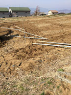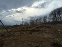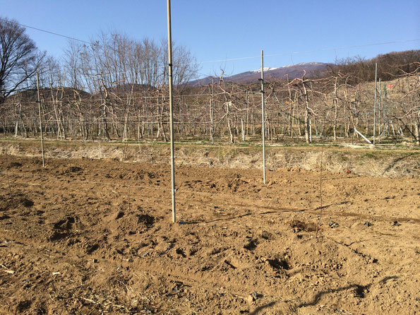 この春に借りた畑だったので、まず、りんごの棚作りから始めました。