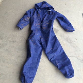 これが服に付くと洗っても落ちないので、こんなのを着て塗っています。